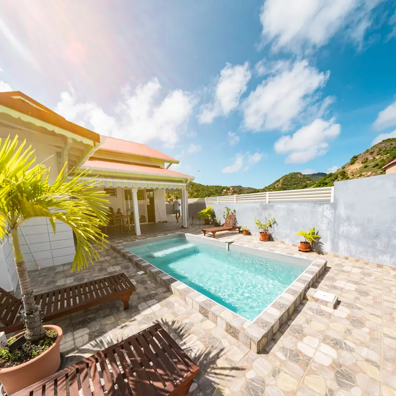 Nos logements sont situés dans le quartier du Marigot, à 15 minutes à pieds du bourg et à 5 minutes de la plage de Pompierre, dans une zone paisible.